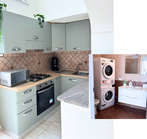 Le nostre camere sono pensate per offrire tutta la libertà e il comfort di cui hai bisogno durante la tua vacanza. Ogni spazio è dotato di cucina attrezzata, ideale per preparare i tuoi piatti preferiti in totale autonomia, e dispone di lavatrice e asciugatrice, così da garantirti praticità e comodità in ogni momento del soggiorno.